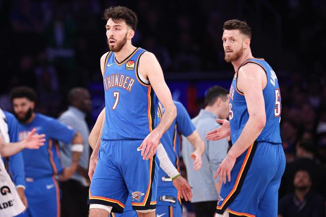 除了亚历山大之外,切特今天外线手感也是相当炸裂。首节他就投进4记三分,轰下14分。上半场他投篮11中8,三分8中6,砍下22分5篮板1助攻。